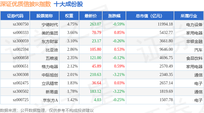 深证优质信披R(470065)指数十大成份股详情如下: