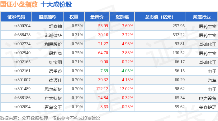 证券之星消息,8月4日,国证小盘(980202)指数报收于1666.15点,涨1.65%,成交1985.28亿元,换手率3.99%。当日该指数成份股中,上涨的有1184家,海辰药业以20.01%的涨幅领涨,下跌的有282家,幸福蓝海以11.33%的跌幅领跌。
