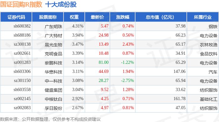 国证回购R(480063)指数十大成份股详情如下: