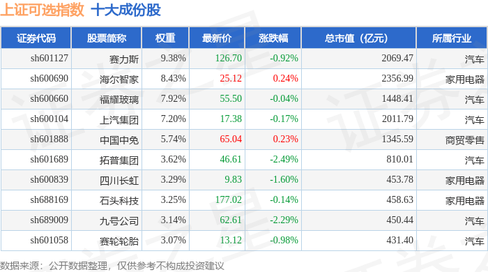 上证可选(000035)指数十大成份股详情如下: