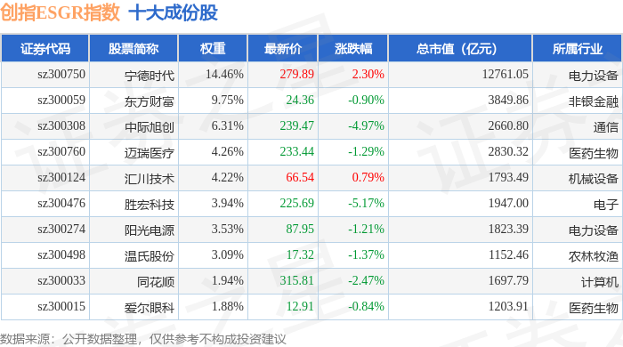 资金流向方面,创指ESGR(470028)指数成份股当日主力资金净流出合计37.89亿元,游资资金净流入合计4.62亿元,散户资金净流入合计33.26亿元。成份股资金流向详情见下表: