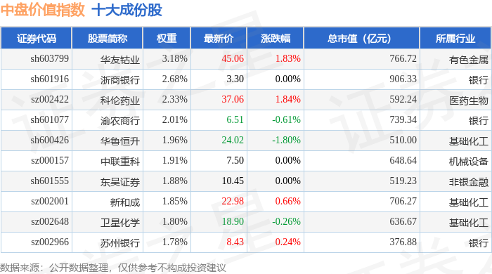 中盘价值(399375)指数十大成份股详情如下:
