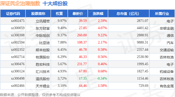 资金流向方面,深证民企治理(970058)指数成份股当日主力资金净流入合计10.18亿元,游资资金净流出合计7.07亿元,散户资金净流出合计3.1亿元。成份股资金流向详情见下表: