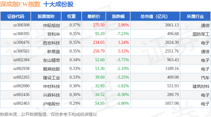 深成指EW(399659)指数十大成份股详情如下: