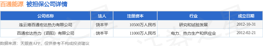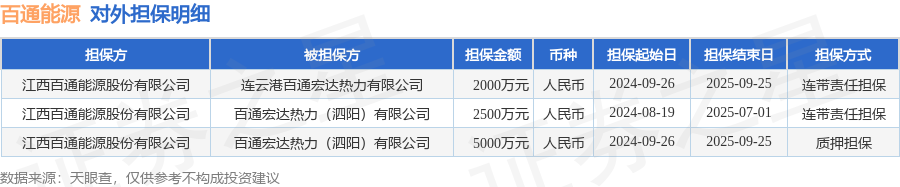 百通能源8月18日披露3笔对外担保,被担保公司2家。对外担保明细如下表: