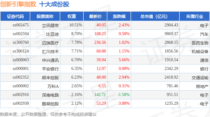 创新引擎(399050)指数十大成份股详情如下: