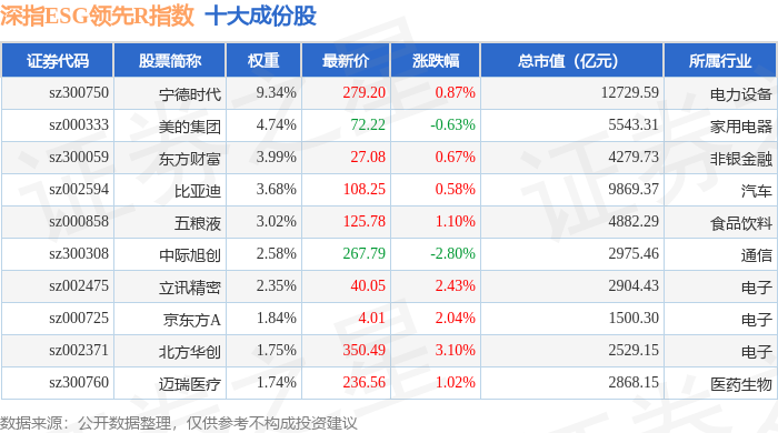 深指ESG领先R(470029)指数十大成份股详情如下:
