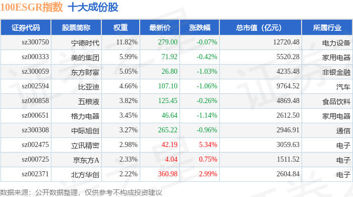 资金流向方面,100ESGR(470027)指数成份股当日主力资金净流出合计46.3亿元,游资资金净流出合计3.17亿元,散户资金净流入合计49.47亿元。成份股资金流向详情见下表: