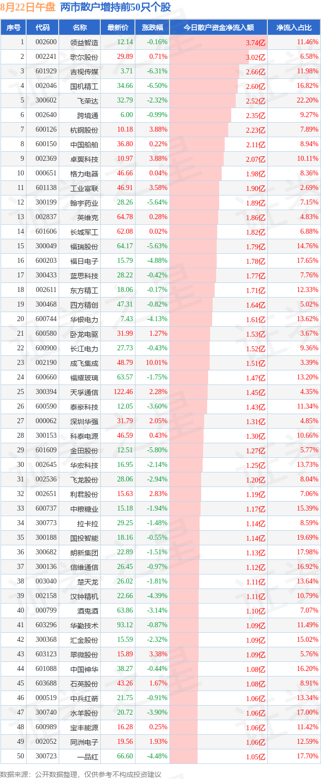 证券之星消息,8月22日A股午盘,沪指涨0.67%,报收3796.36点;深成指涨1.32%,报收12076.85点;创业板指涨2.56%,报收2661.97点。