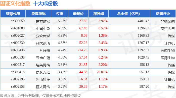 资金流向方面,国证文化(399397)指数成份股当日主力资金净流入合计50.21亿元,游资资金净流出合计23.77亿元,散户资金净流出合计26.44亿元。成份股资金流向详情见下表:
