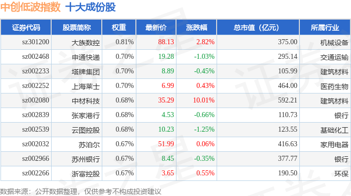 证券之星消息,8月22日,中创低波(399665)指数报收于2235.33点,涨0.45%,成交1393.08亿元,换手率1.85%。当日该指数成份股中,上涨的有106家,中材科技以10.01%的涨幅领涨,下跌的有80家,云南能投以5.25%的跌幅领跌。