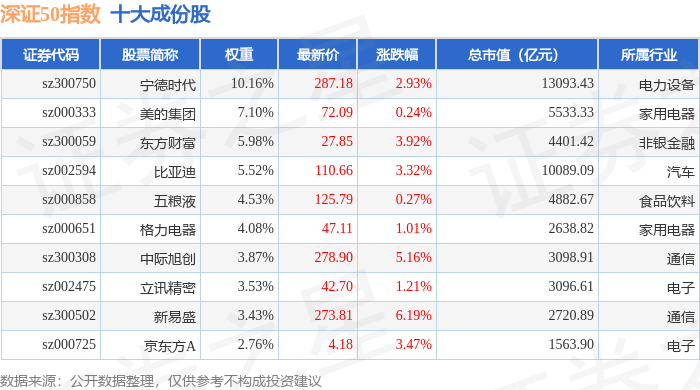 资金流向方面,深证50(399850)指数成份股当日主力资金净流入合计93.27亿元,游资资金净流出合计55.65亿元,散户资金净流出合计37.62亿元。成份股资金流向详情见下表: