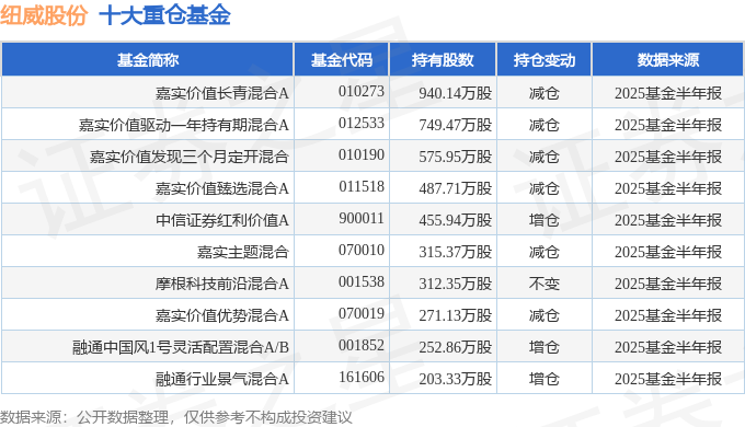 持有纽威股份最多的基金为嘉实价值长青混合A,目前规模为33.87亿元,最新净值0.9304(8月22日),较上一交易日上涨0.31%,近一年上涨22.52%。该基金现任基金经理为谭丽。