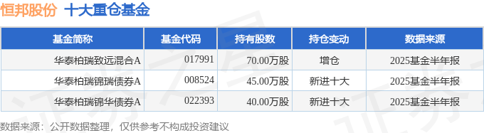 持有恒邦股份最多的基金为华泰柏瑞致远混合A,目前规模为0.89亿元,最新净值1.3912(8月22日),较上一交易日上涨1.99%,近一年上涨52.43%。该基金现任基金经理为叶丰。