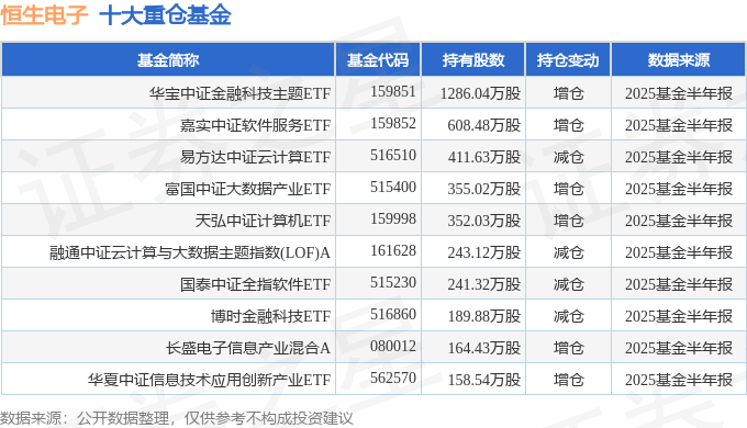 持有恒生电子最多的基金为华宝中证金融科技主题ETF,目前规模为57.31亿元,最新净值1.0007(8月22日),较上一交易日上涨3.26%,近一年上涨182.17%。该基金现任基金经理为陈建华 曹旭辰。