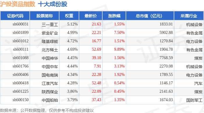 沪投资品(000102)指数十大成份股详情如下: