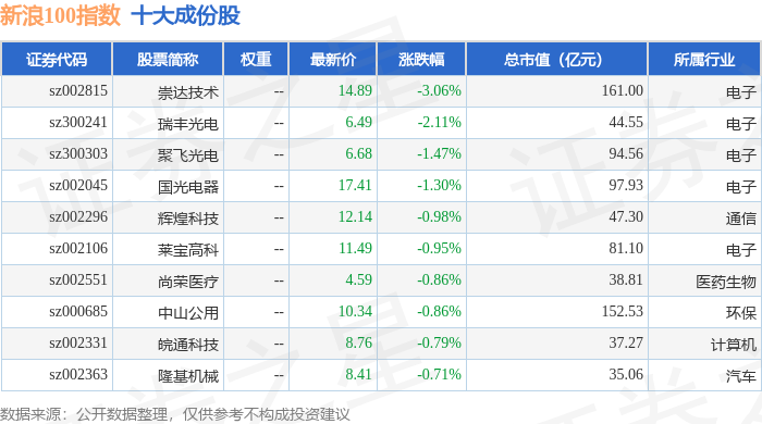 新浪100(399297)指数十大成份股详情如下: