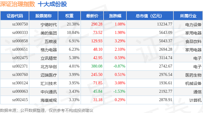 深证治理(399328)指数十大成份股详情如下: