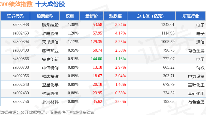 证券之星消息,8月25日,300绩效(399657)指数报收于6706.16点,涨2.14%,成交6409.08亿元,换手率2.91%。当日该指数成份股中,上涨的有240家,金力永磁以20.0%的涨幅领涨,下跌的有58家,鼎龙股份以2.92%的跌幅领跌。