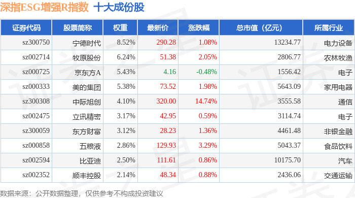 深指ESG增强R(470032)指数十大成份股详情如下: