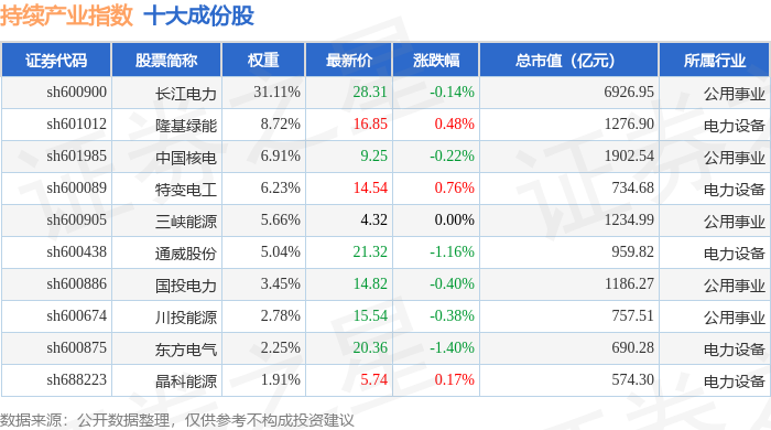 持续产业(000114)指数十大成份股详情如下: