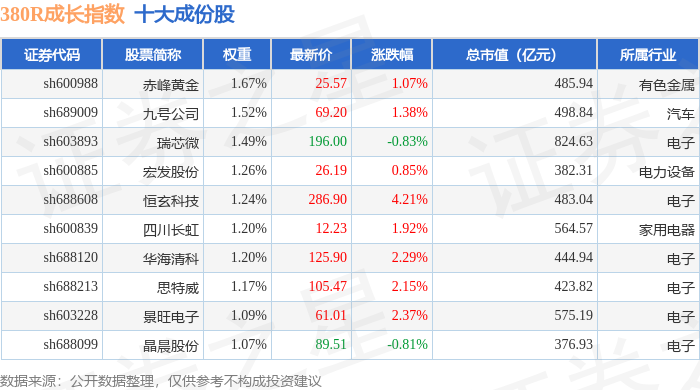 证券之星消息,8月26日,380R成长(000119)指数报收于4223.24点,涨0.4%,成交1941.77亿元,换手率2.64%。当日该指数成份股中,上涨的有145家,盛美上海以10.16%的涨幅领涨,下跌的有135家,盛和资源以5.37%的跌幅领跌。