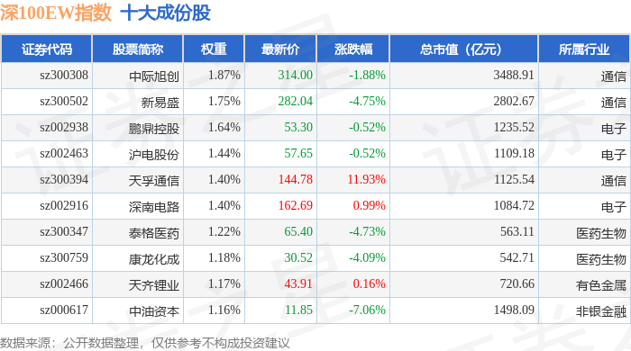 深100EW(399632)指数十大成份股详情如下: