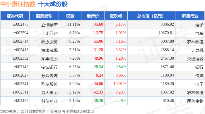 证券之星消息,8月26日,中小责任(399651)指数报收于1718.48点,涨2.4%,成交636.95亿元,换手率2.2%。当日该指数成份股中,上涨的有36家,歌尔股份以10.01%的涨幅领涨,下跌的有14家,奇正藏药以2.52%的跌幅领跌。