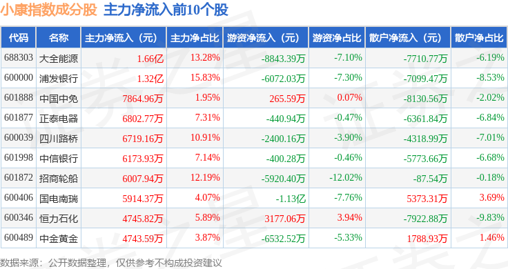 资金流向方面,小康指数(399901)成份股当日主力资金净流出合计71.29亿元,游资资金净流入合计20.44亿元,散户资金净流入合计50.85亿元。成份股资金流向详情见下表: