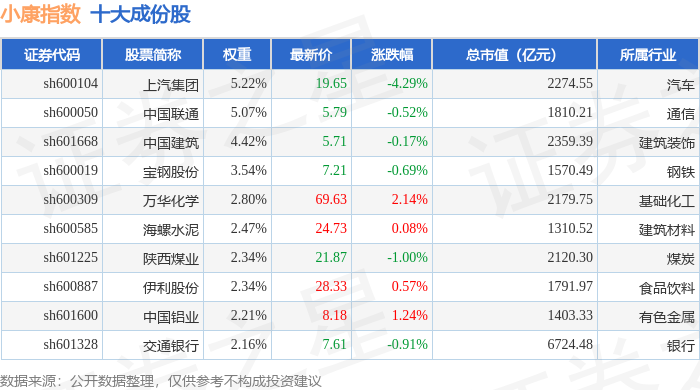 证券之星消息,8月26日,小康指数(399901)报收于6341.27点,跌0.65%,成交1196.46亿元,换手率0.91%。当日该指数成份股中,上涨的有28家,宝丰能源以3.86%的涨幅领涨,下跌的有66家,包钢股份以7.36%的跌幅领跌。