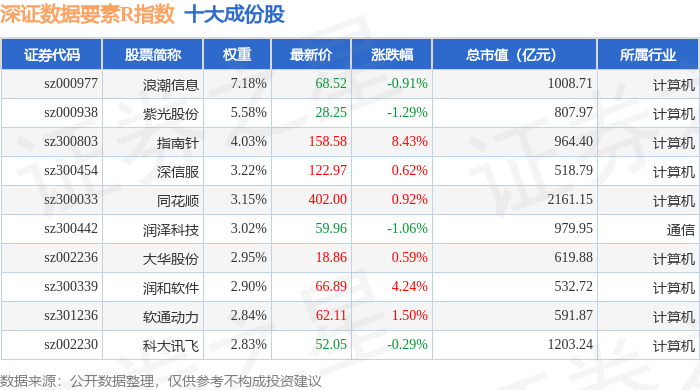 深证数据要素R(470053)指数十大成份股详情如下: