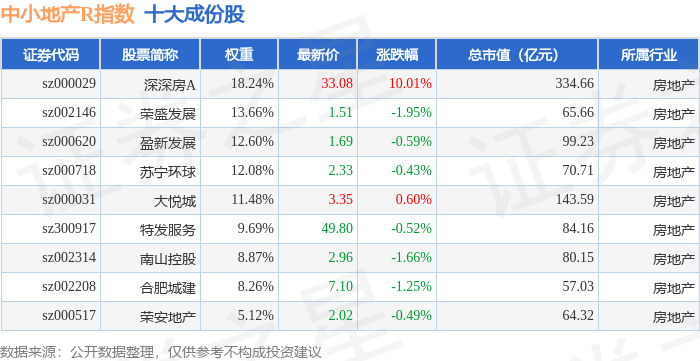 证券之星消息,8月26日,中小地产R(471002)指数报收于1755.45点,涨1.89%,成交22.18亿元,换手率2.99%。当日该指数成份股中,上涨的有2家,深深房A以10.01%的涨幅领涨,下跌的有7家,荣盛发展以1.95%的跌幅领跌。