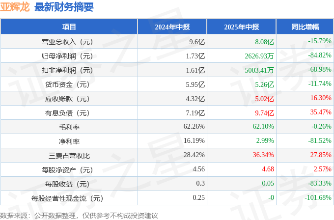 本次财报公布的各项数据指标表现不尽如人意。其中,毛利率62.1%,同比减0.26%,净利率2.99%,同比减81.52%,销售费用、管理费用、财务费用总计2.94亿元,三费占营收比36.34%,同比增27.85%,每股净资产4.68元,同比增2.57%,每股经营性现金流-0.0元,同比减101.68%,每股收益0.05元,同比减83.33%