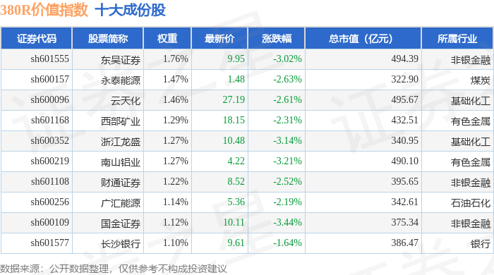 380R价值(000120)指数十大成份股详情如下: