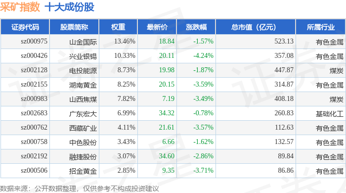 资金流向方面,采矿指数(399232)成份股当日主力资金净流出合计11.45亿元,游资资金净流入合计3.25亿元,散户资金净流入合计8.21亿元。成份股资金流向详情见下表: