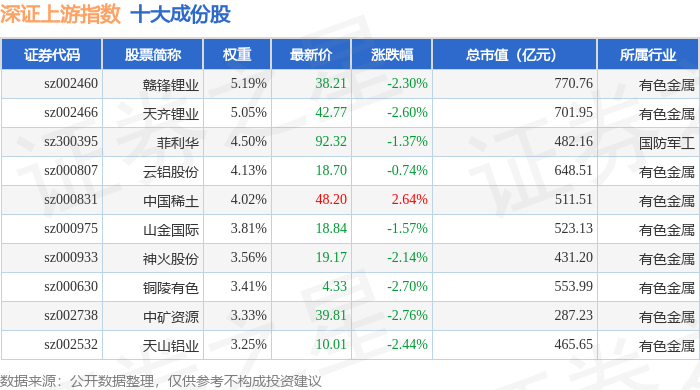 证券之星消息,8月27日,深证上游(399704)指数报收于5129.93点,跌1.75%,成交613.73亿元,换手率3.72%。当日该指数成份股中,上涨的有8家,立中集团以7.07%的涨幅领涨,下跌的有42家,兴业银锡以4.24%的跌幅领跌。
