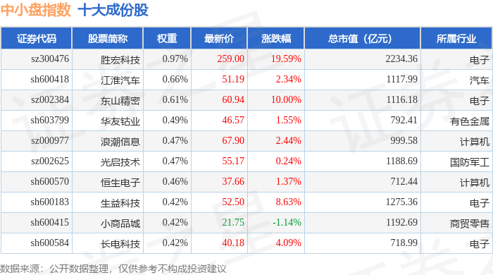 中小盘(399401)指数十大成份股详情如下: