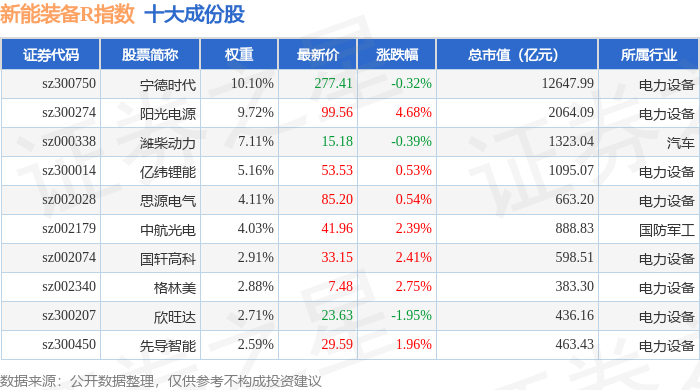 资金流向方面,新能装备R(470043)指数成份股当日主力资金净流出合计21.88亿元,游资资金净流入合计4.86亿元,散户资金净流入合计17.02亿元。成份股资金流向详情见下表: