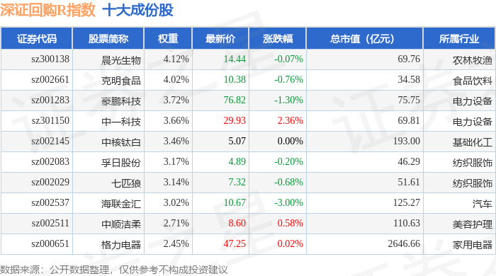 深证回购R(470063)指数十大成份股详情如下: