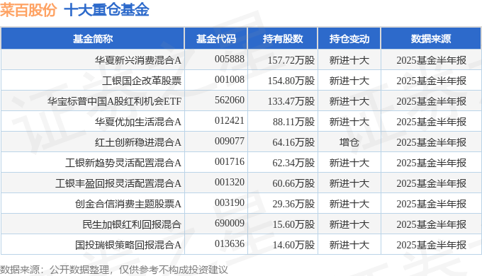 持有菜百股份最多的基金为华夏新兴消费混合A,目前规模为4.97亿元,最新净值2.2542(8月28日),较上一交易日下跌0.78%,近一年上涨31.11%。该基金现任基金经理为孙轶佳。