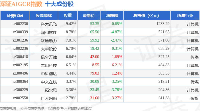 深证AIGCR(470075)指数十大成份股详情如下: