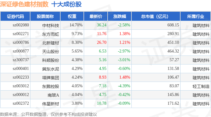 资金流向方面,深证绿色建材(970077)指数成份股当日主力资金净流出合计6.84亿元,游资资金净流入合计6390.12万元,散户资金净流入合计6.21亿元。成份股资金流向详情见下表: