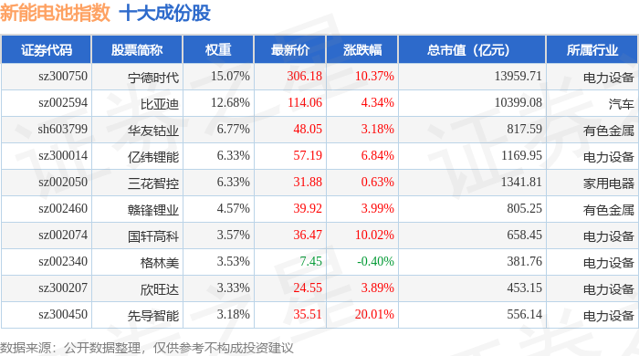 资金流向方面,新能电池(980032)指数成份股当日主力资金净流入合计50.88亿元,游资资金净流出合计30.7亿元,散户资金净流出合计20.18亿元。成份股资金流向详情见下表:
