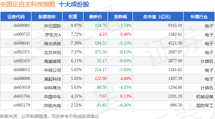 资金流向方面,央国企自主科技(980083)指数成份股当日主力资金净流出合计73.94亿元,游资资金净流入合计30.75亿元,散户资金净流入合计43.19亿元。成份股资金流向详情见下表: