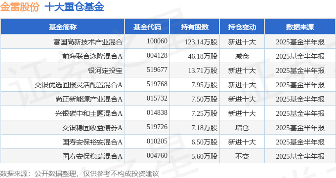 持有金雷股份最多的基金为富国高新技术产业混合,目前规模为9.45亿元,最新净值3.3(8月29日),较上一交易日上涨0.43%,近一年上涨66.3%。该基金现任基金经理为李元博。