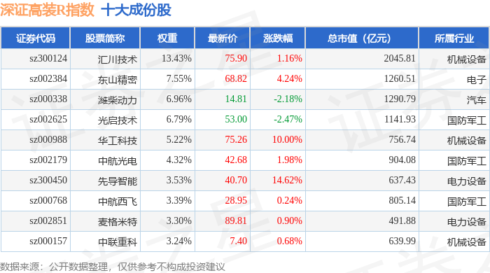 深证高装R(470037)指数十大成份股详情如下: