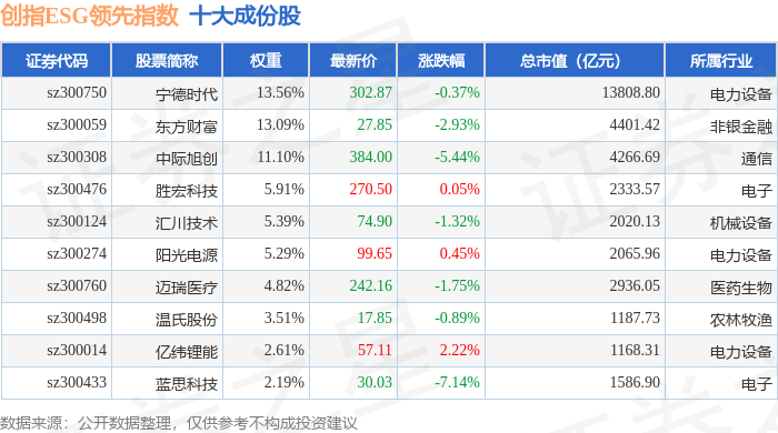 资金流向方面,创指ESG领先(970031)指数成份股当日主力资金净流出合计88.02亿元,游资资金净流入合计21.24亿元,散户资金净流入合计66.79亿元。成份股资金流向详情见下表: