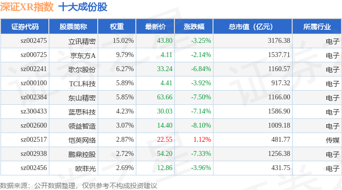 深证XR(970046)指数十大成份股详情如下: