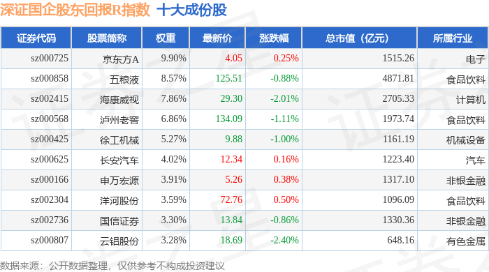 深证国企股东回报R(470064)指数十大成份股详情如下: