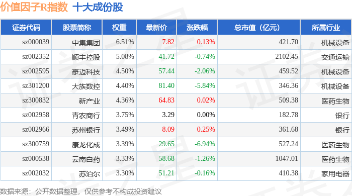 资金流向方面,价值因子R(480056)指数成份股当日主力资金净流出合计11.93亿元,游资资金净流出合计9941.82万元,散户资金净流入合计12.92亿元。成份股资金流向详情见下表: